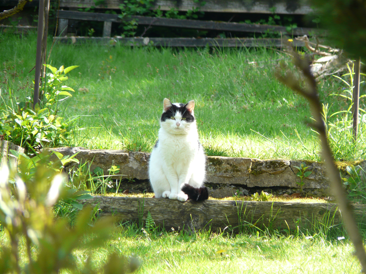 I like the peace here. I can sit for hours up in her garden. She must wonder what I’m thinking … nothing … cats are good at that. A gust, a movement, a scent, even a slight vibration hitting my ears is enough for me. Anyway, she seems to appreciate my calm presence. As to what goes on in her mind, I don’t have a clue.